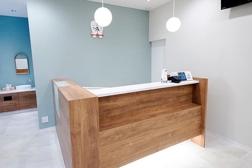 待合室も明るく広々とし、リラックスしてお過ごしいただける空間づくりを心がけています。